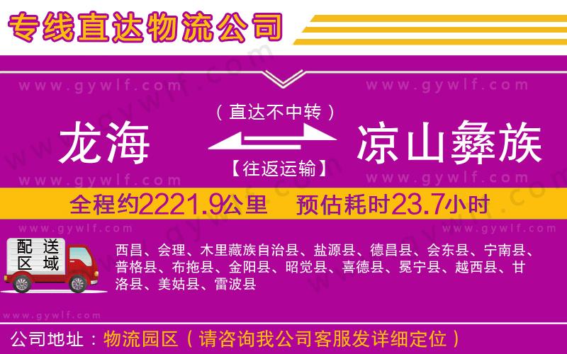 龍海至涼山彝族自治州物流公司全程約2221.9公里,專線運輸用時大約23.7小時,可運輸直達(dá)西昌、會理、木里藏族自治縣、鹽源縣、德昌縣、會東縣、寧南縣、普格縣、布拖縣、金陽縣、昭覺縣、喜德縣、冕寧縣、越西縣、甘洛縣、美姑縣、雷波縣;羊程物流可承接:整車運輸、零擔(dān)運輸、大件運輸、轎車托運、危險品運輸、 139-8091-8052 點擊撥打電話